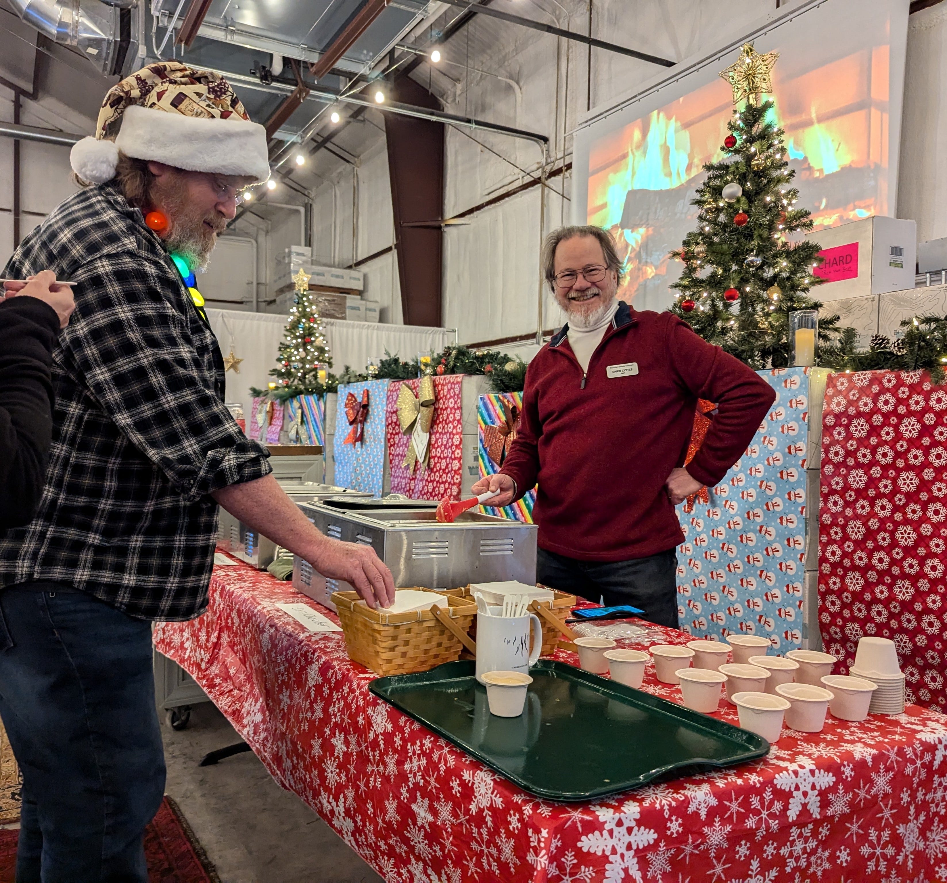 Diana’s brother, Chris Lyttle, is part of the auxiliary servers who we draft to help us serve corn chowder to the 1,350 people who come through on this weekend. He will be back (we hope) on Dec. 6-8 for the second weekend and another 1,350 Deck-the-Hall-ers.